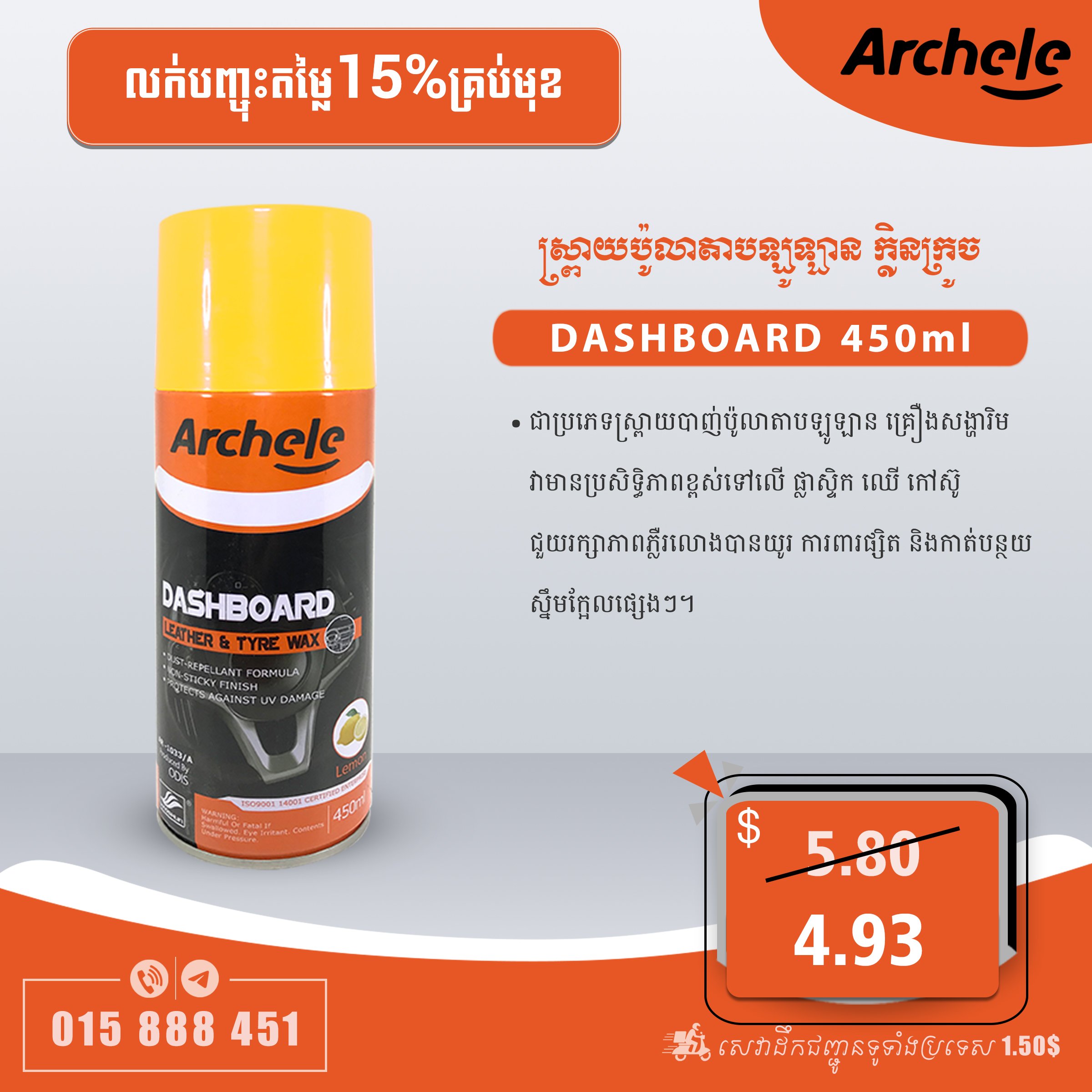 ជារូបមន្តថ្មីចុងក្រោយ ដែលការពារមិនឲ្យហើរពណ៌ ប្រេះស្រាំ ដោយកាត់បន្ថយកាំរស្មីUV ។ វាងាយស្រួលប្រើប្រាស់ សម្រាប់ផ្ទៃ ដែលជាគ្រឿងប្លាស្ទិក កៅស៊ូ ជ័រ និងស្បែក។