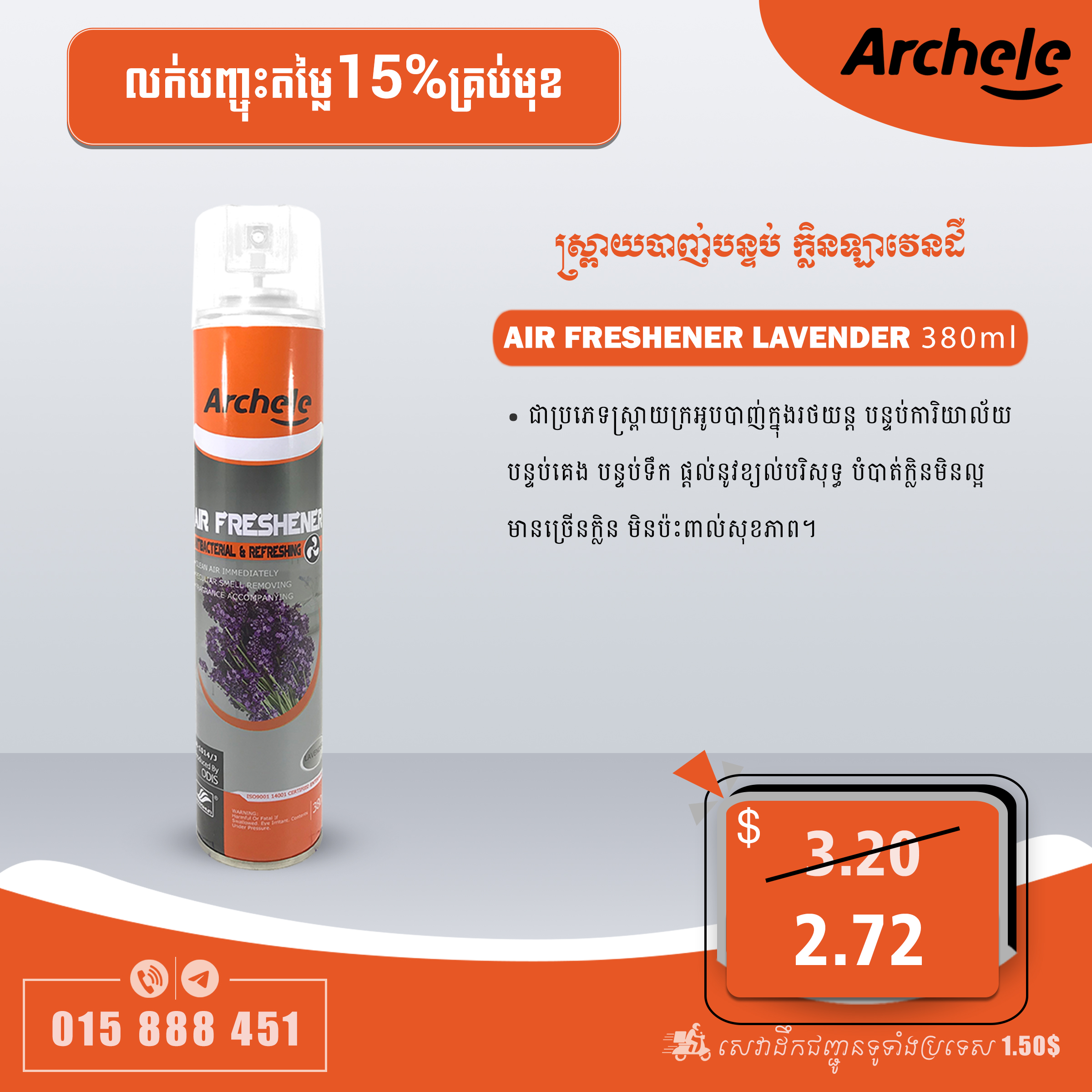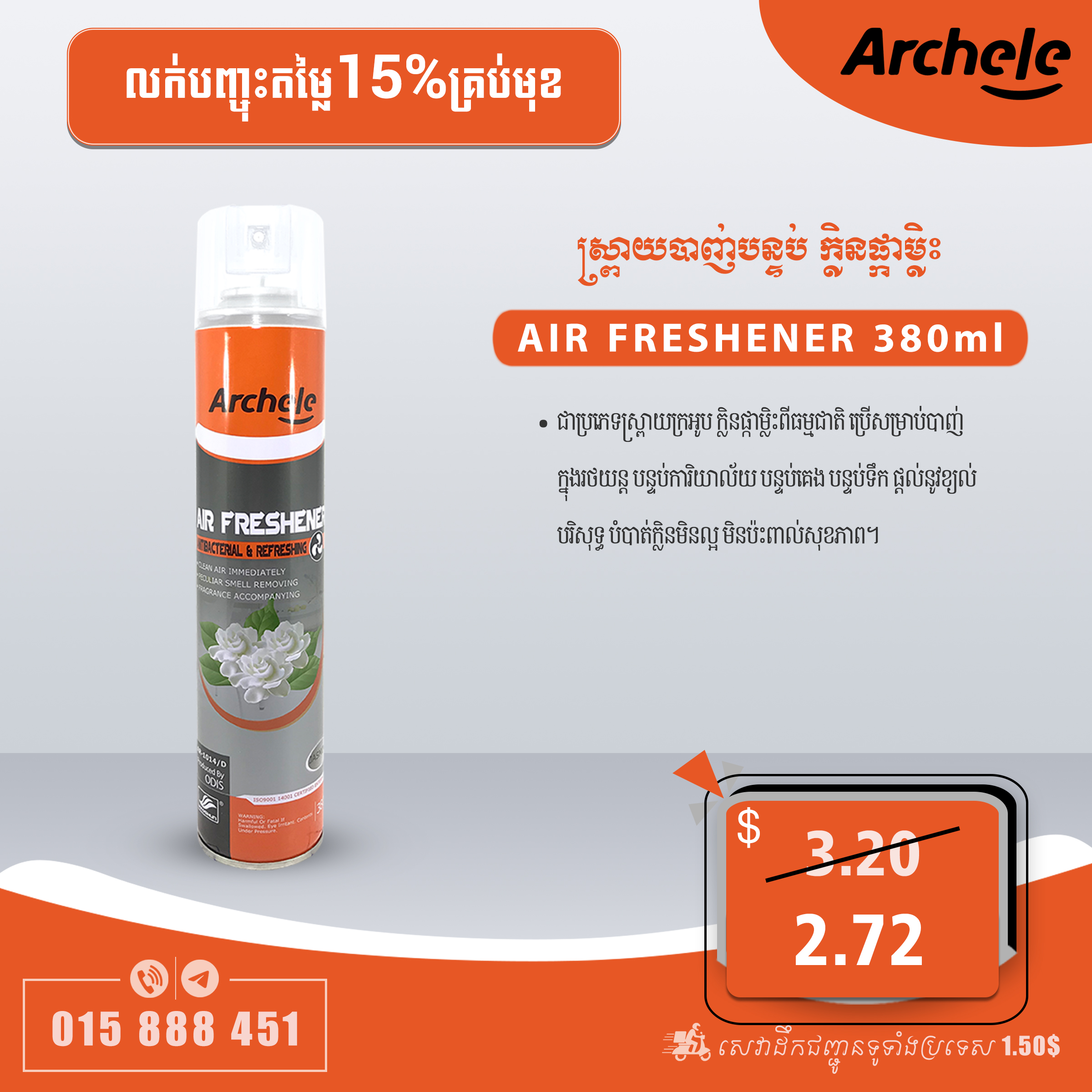 ជាប្រភេទស្ព្រាយក្រអូប ក្លិនផ្កាម្លិះពីធម្មជាតិ ប្រើសម្រាប់បាញ់ ក្នុងរថយន្ត បន្ទប់ការិយាល័យ បន្ទប់គេង បន្ទប់ទឹក ផ្តល់នូវខ្យល់ បរិសុទ្ធ បំបាត់ក្លិនមិនល្អ មិនប៉ះពាល់សុខភាព។