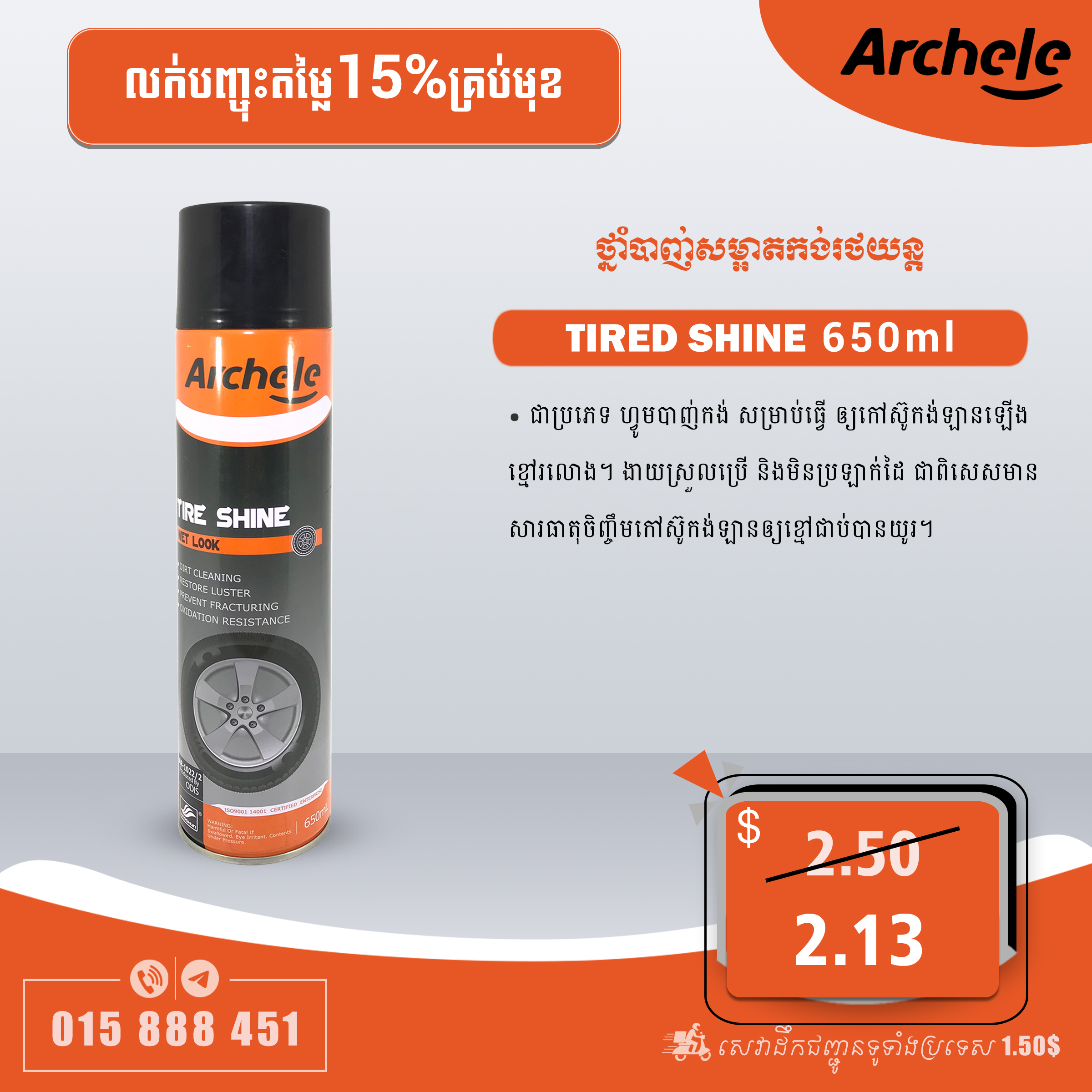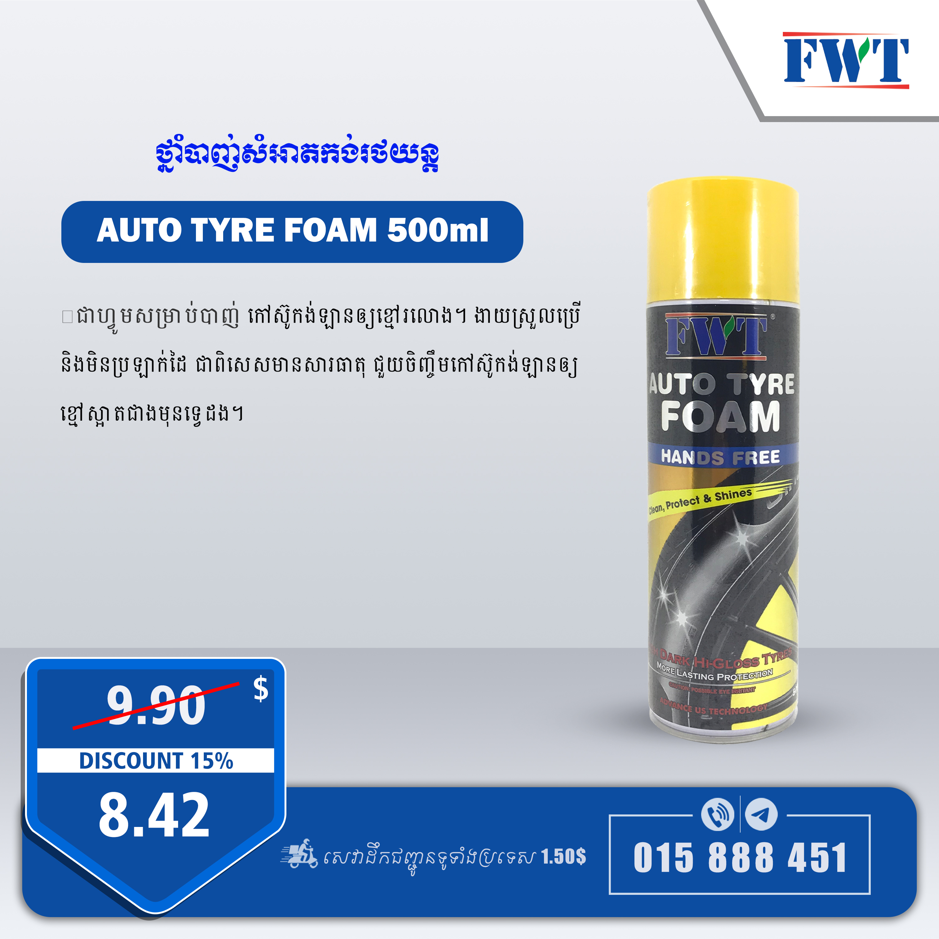 ជាប្រភេទ ហ្វូមបាញ់កង់ សម្រាប់ធ្វើ ឲ្យកៅស៊ូកង់ឡានឡើង ខ្មៅរលោង។ ងាយស្រួលប្រើ និងមិនប្រឡាក់ដៃ ជាពិសេសមាន សារធាតុចិញ្ចឹមកៅស៊ូកង់ឡានឲ្យខ្មៅជាប់បានយូរ។