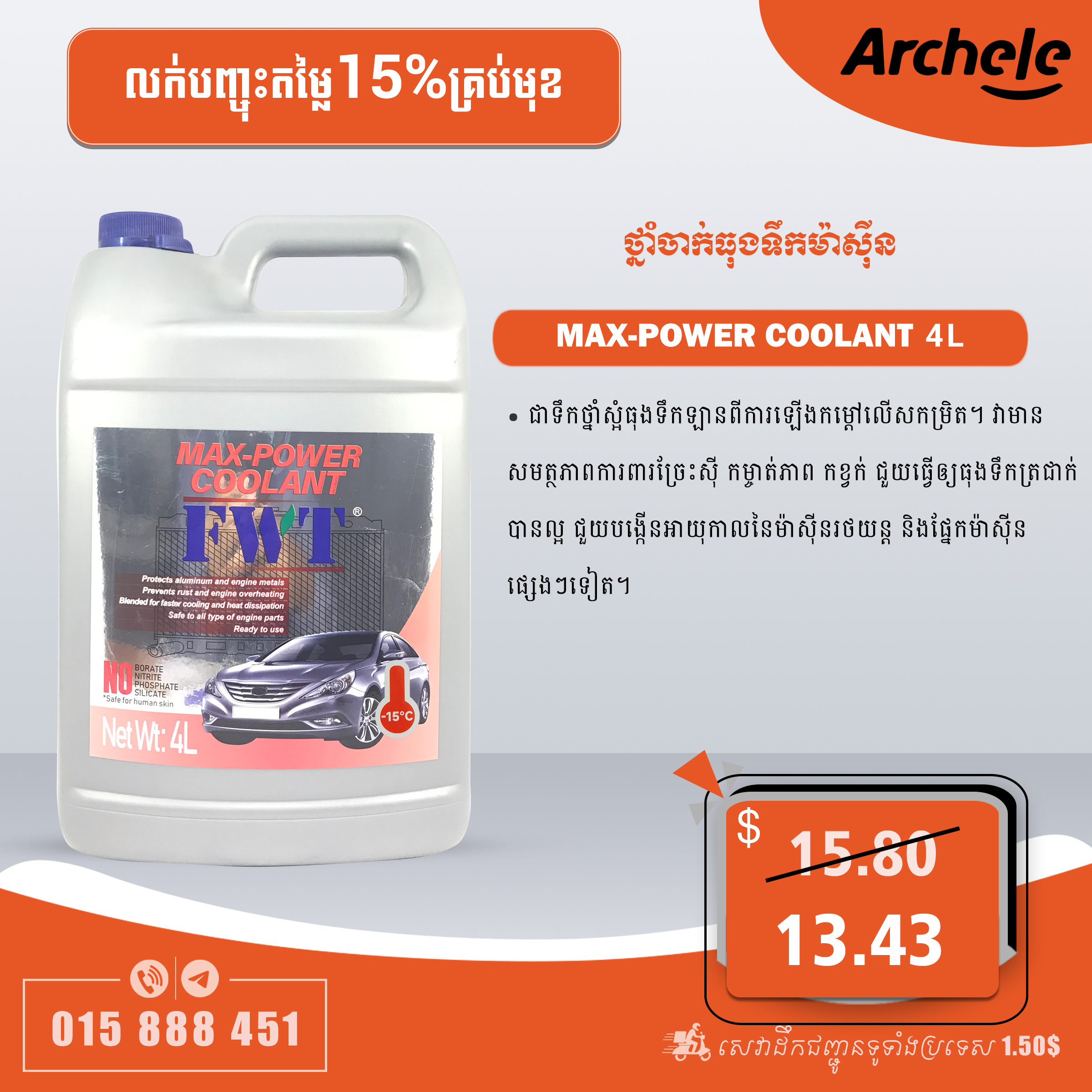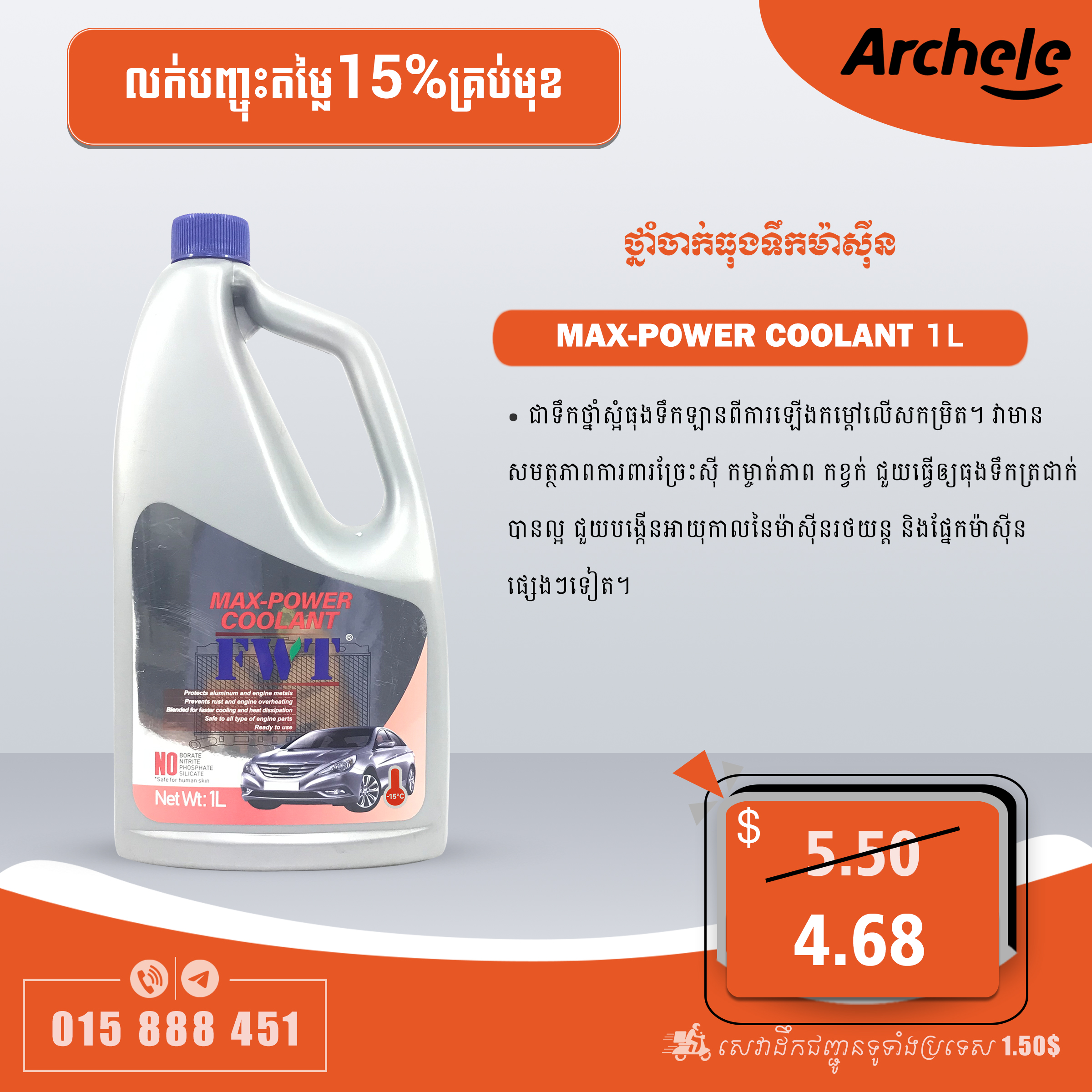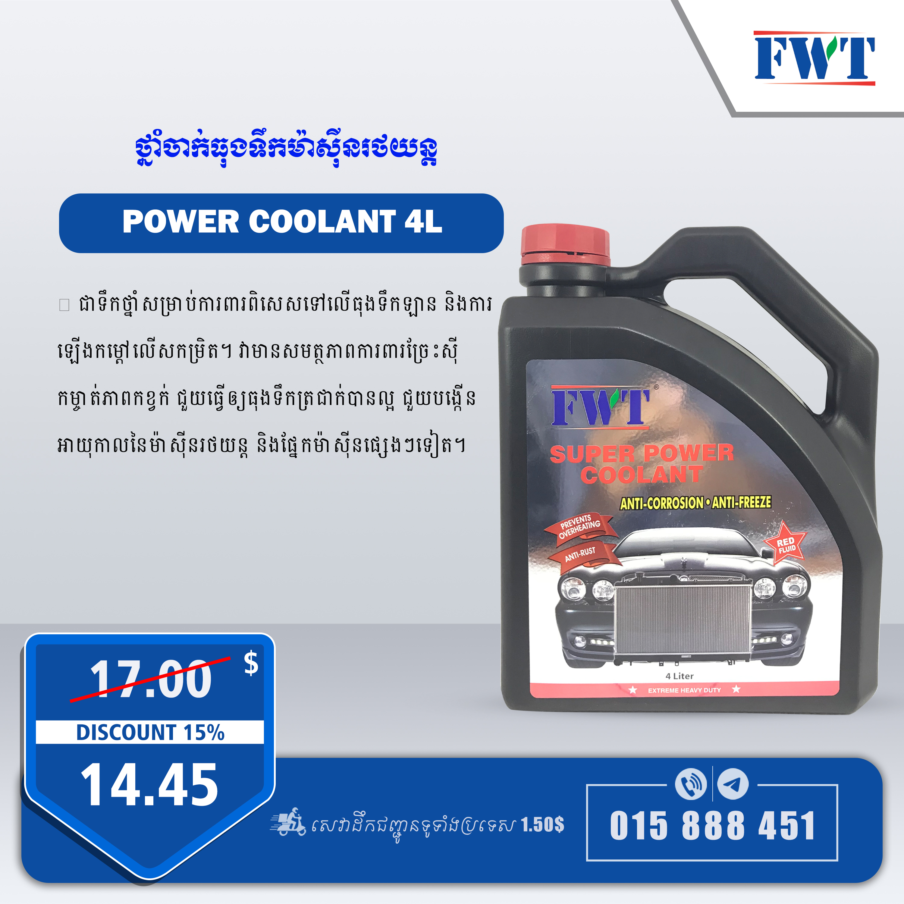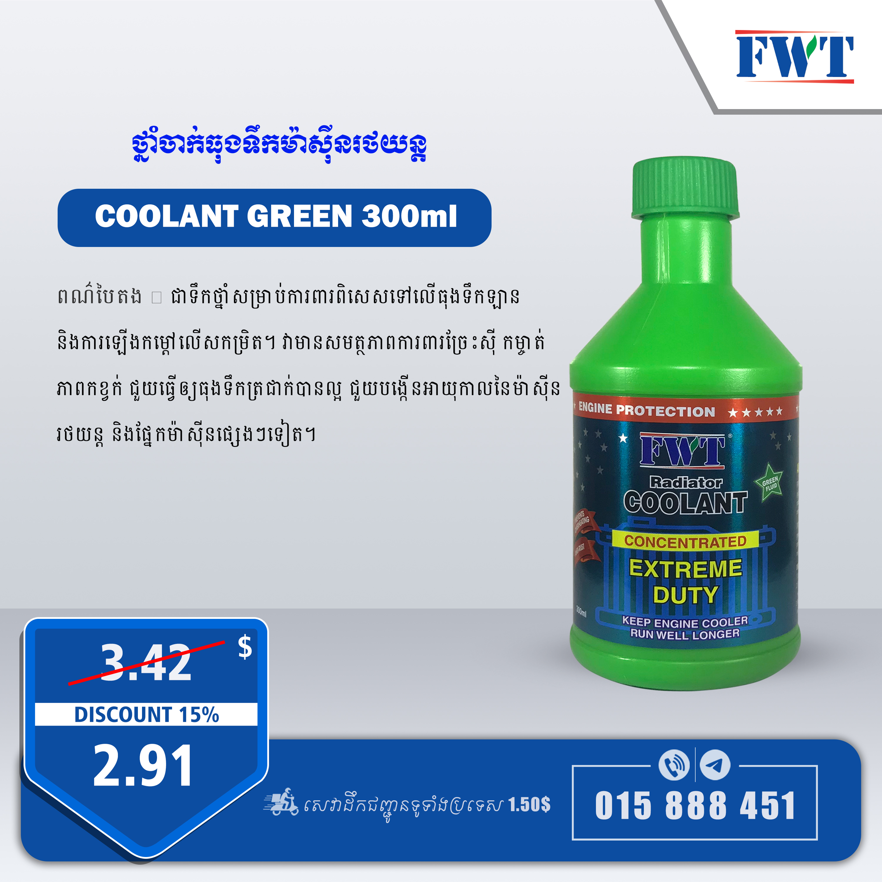 ជាទឹកថ្នាំសម្រាប់ការពារពិសេសទៅលើធុងទឹកឡាន និងការ ឡើងកម្តៅលើសកម្រិត។ វាមានសមត្ថភាពការពារច្រែះស៊ី កម្ចាត់ភាពកខ្វក់ ជួយធ្វើឲ្យធុងទឹកត្រជាក់បានល្អ ជួយបង្កើន អាយុកាលនៃម៉ាស៊ីនរថយន្ត និងផ្នែកម៉ាស៊ីនផ្សេងៗទៀត។